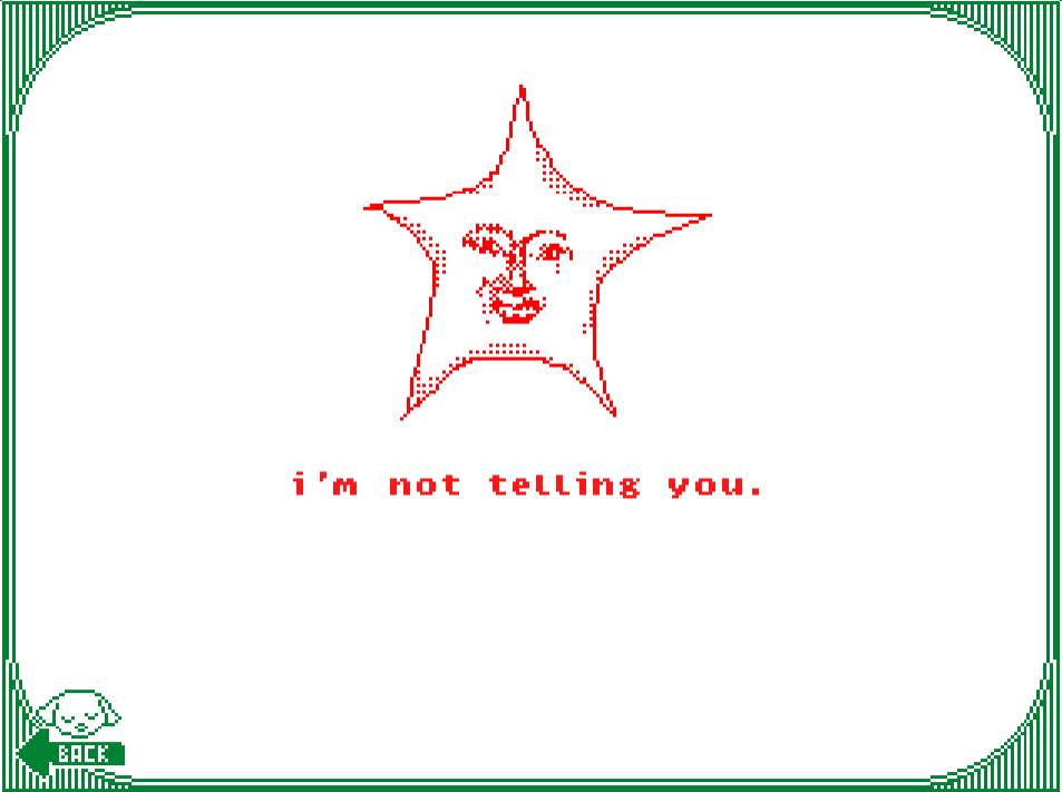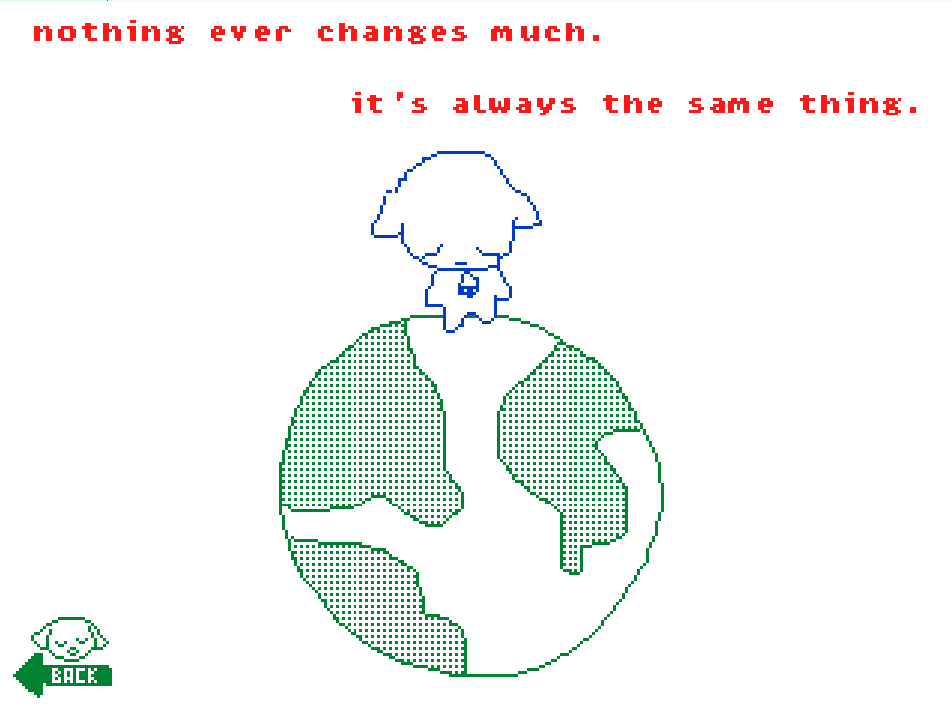 great art, wonderful music and atmosphere! i don’t know if it’s intentional, but if i go to 8a through 7a_a and then click on it so that the frame repeats itself (nothing ever changes much) and then click the back button, then it goes back to 8b_b. i did it accidentally before i saw 8b_b at all, so i was very confused >_<