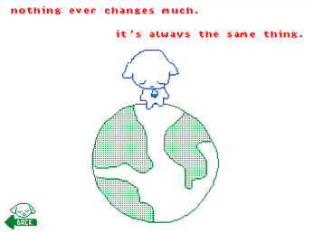 love that on the "its always the same thing. over and over.", if you click on the world and the little guy standing on it, the page starts over again and you can loop it, its a nice little detail ^^ beautiful game